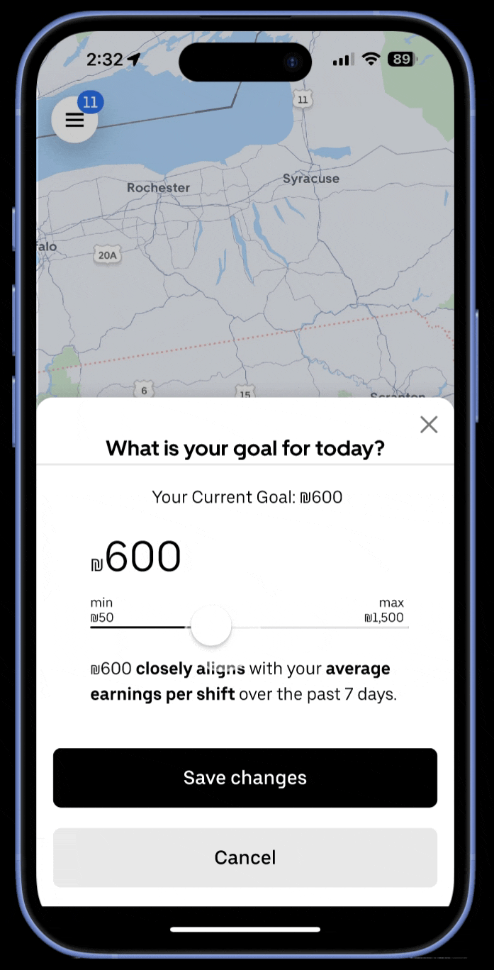 A financial goal-setting feature that helps couriers track progress, stay motivated, and achieve their daily earnings targets.